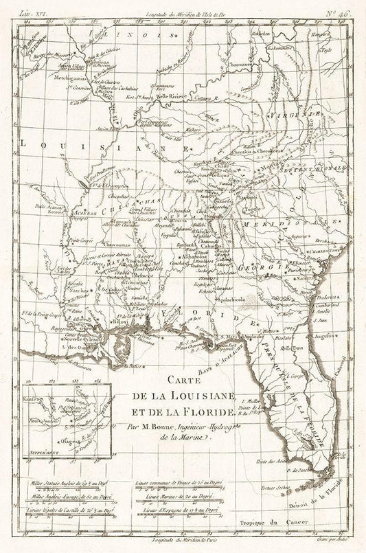 Louisiana Florida - Bonne 1780 White Modern Wood Framed Art Print with Double Matting by Bonne