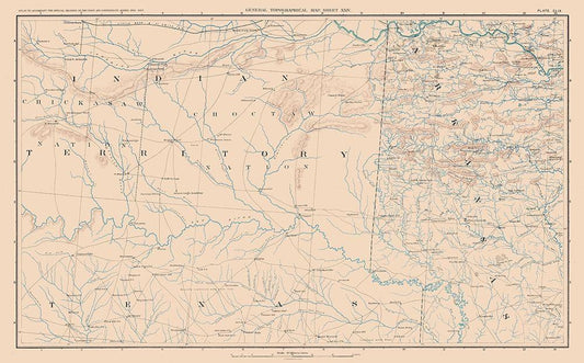 Indian Territory Texas Arkansas - Bien 1894 White Modern Wood Framed Art Print with Double Matting by Bien