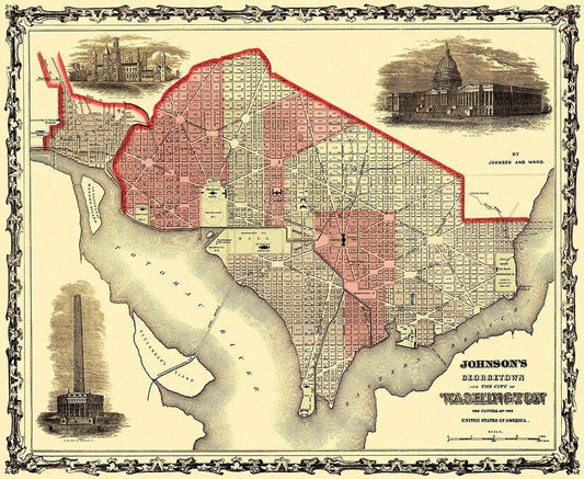 Georgetown Washington DC - Johnson 1862 White Modern Wood Framed Art Print with Double Matting by Johnson