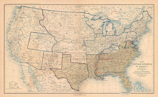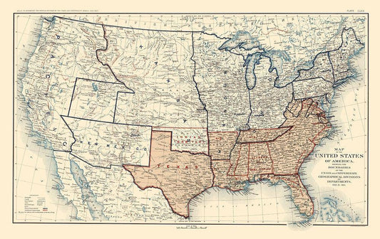 Boundaries of United States 1861 - Bien 1894 White Modern Wood Framed Art Print with Double Matting by Bien