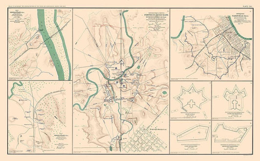 Defenses Forts 8 Views - Bien 1894 White Modern Wood Framed Art Print with Double Matting by Bien