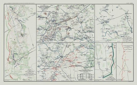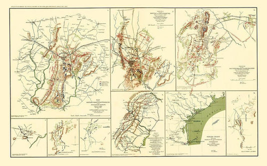 Texas Virginia Pennsylvania Georgia Battle Routes White Modern Wood Framed Art Print with Double Matting by Hotchkiss