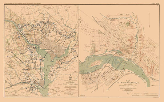 Major Battles Virginia Maryland - Bien 1894 White Modern Wood Framed Art Print with Double Matting by Bien