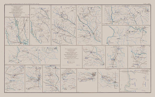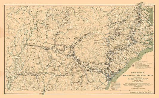 General Sherman Marches 1863 to 1865 - Bien 1894 White Modern Wood Framed Art Print with Double Matting by Bien