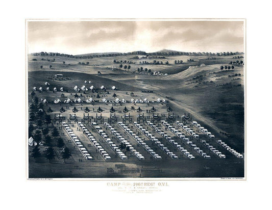 Camp of 196th Regiment - Schmidt 1860s White Modern Wood Framed Art Print with Double Matting by Schmidt