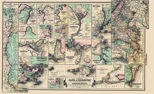 United States Military Forts - Mitchell 1861 White Modern Wood Framed Art Print with Double Matting by Mitchell