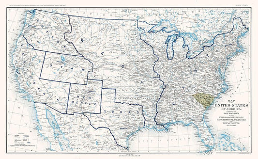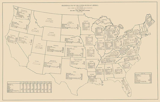 Statistical United States of America - Black 1888 White Modern Wood Framed Art Print with Double Matting by Black