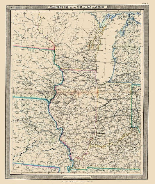 Seat of War in America - Stanford 1861 White Modern Wood Framed Art Print with Double Matting by Stanford