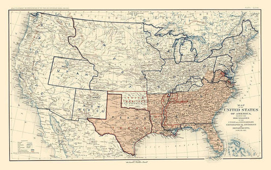 Parts of South Central United States - Bien 1895 White Modern Wood Framed Art Print with Double Matting by Bien