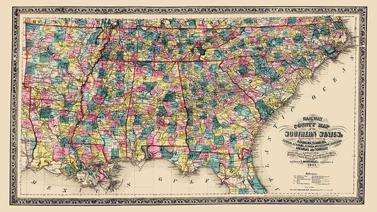 Southern States Railway County - Mendenhall 1864 White Modern Wood Framed Art Print with Double Matting by Mendenhall
