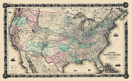 United States Military Stations Forts - Colton White Modern Wood Framed Art Print with Double Matting by Colton