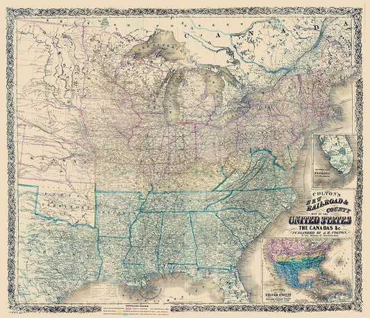 United States Canadas Railroad - Colton 1862 White Modern Wood Framed Art Print with Double Matting by Colton