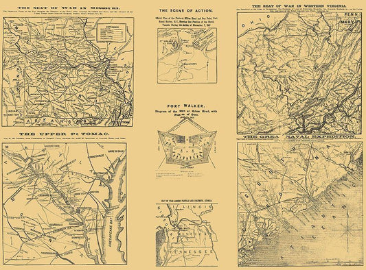 Seat of War Group 4 Views - Hall 1861 White Modern Wood Framed Art Print with Double Matting by Hall