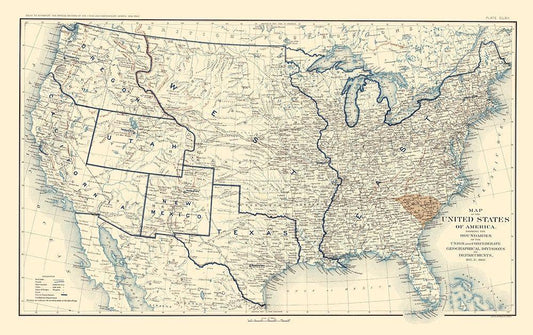 Geographical Divisions Departments June 1861 White Modern Wood Framed Art Print with Double Matting by Bien