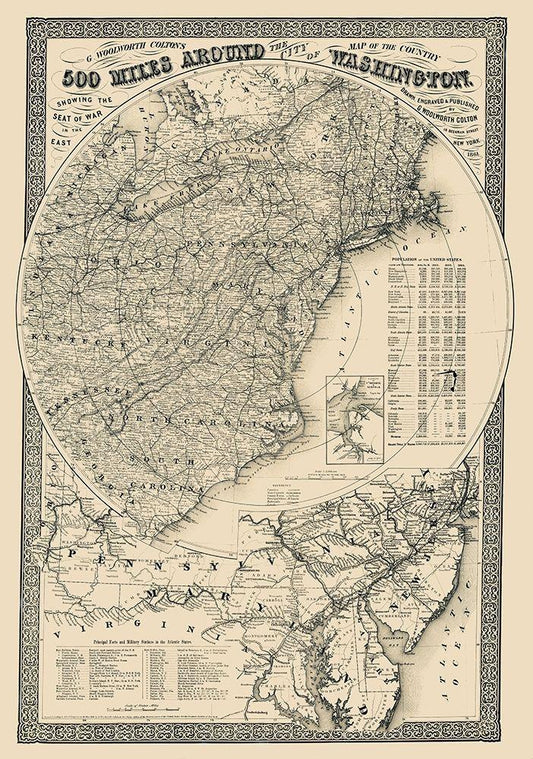 500 Miles Around the City of Washington White Modern Wood Framed Art Print with Double Matting by Colton