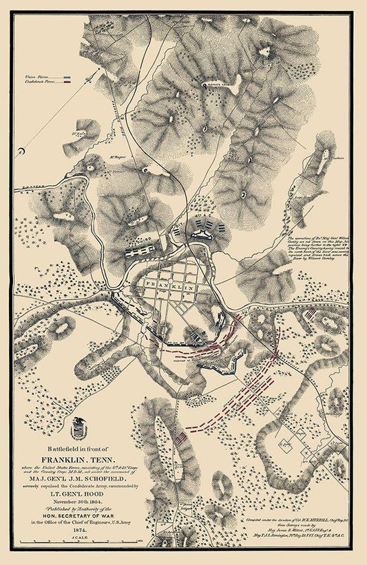 Franklin Tennessee Battlefield - Schofield 1874 White Modern Wood Framed Art Print with Double Matting by Schofield
