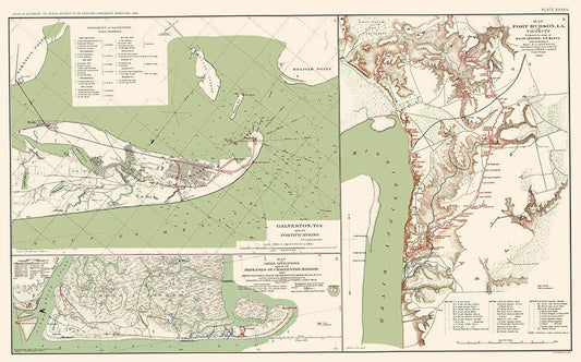 Galveston Charleston Port Hudson - Bien 1891 White Modern Wood Framed Art Print with Double Matting by Bien