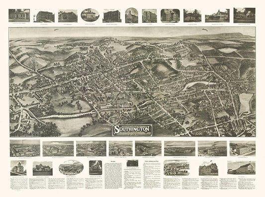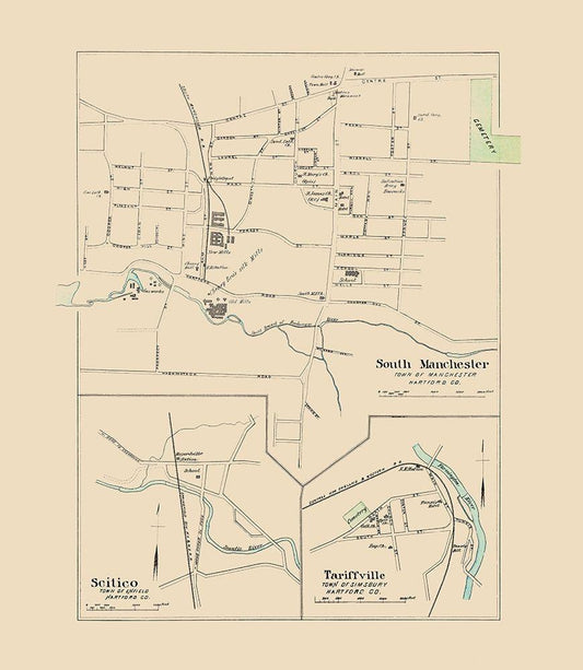 Manchester, South Connecticut - Hurd 1893 White Modern Wood Framed Art Print with Double Matting by Hurd