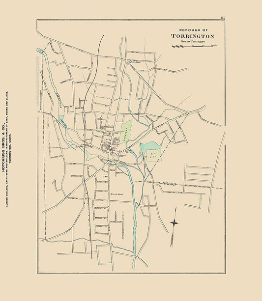 Torrington Connecticut - Hurd 1893 White Modern Wood Framed Art Print with Double Matting by Hurd