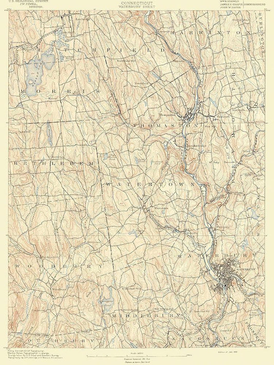 Waterbury Connecticut Sheet - USGS 1892 White Modern Wood Framed Art Print with Double Matting by USGS