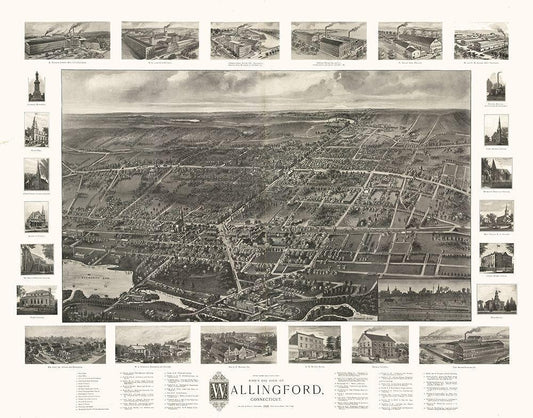 Wallingford Connecticut - Hurd 1893 White Modern Wood Framed Art Print with Double Matting by Hurd