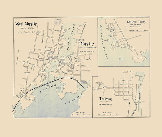 West Mystic Connecticut - Hurd 1893 White Modern Wood Framed Art Print with Double Matting by Hurd