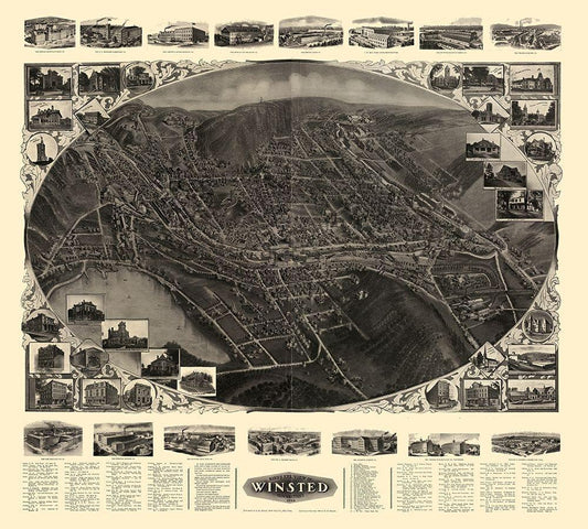 Winsted Connecticut - Bailey 1908 White Modern Wood Framed Art Print with Double Matting by Bailey