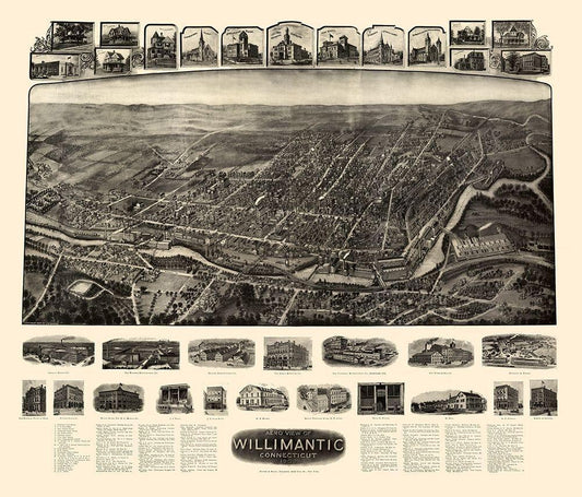 Willimantic Connecticut - Bailey 1909 White Modern Wood Framed Art Print with Double Matting by Bailey