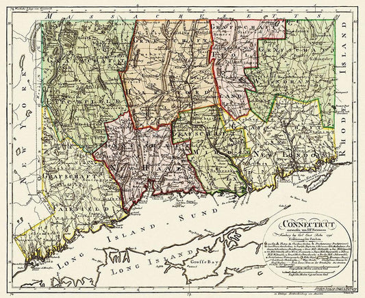 Connecticut - Sotzmann 1796 White Modern Wood Framed Art Print with Double Matting by Sotzmann