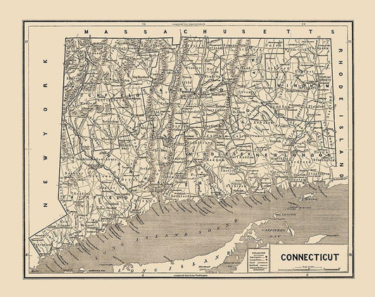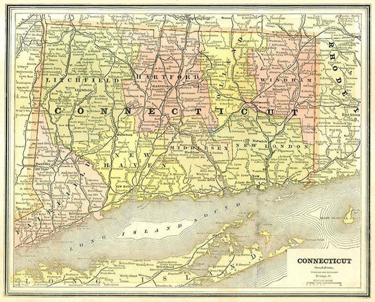 Connecticut - Cram 1886 White Modern Wood Framed Art Print with Double Matting by Cram