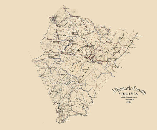 Albemarle County Virginia - Hotchkiss 1867 White Modern Wood Framed Art Print with Double Matting by Hotchkiss