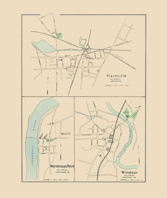 Plainville, Warehouse Point, Windsor Connecticut White Modern Wood Framed Art Print with Double Matting by Hurd