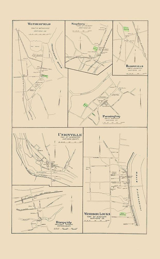 Windsor Locks, Wetherfield, Farmington Connecticut White Modern Wood Framed Art Print with Double Matting by Hurd