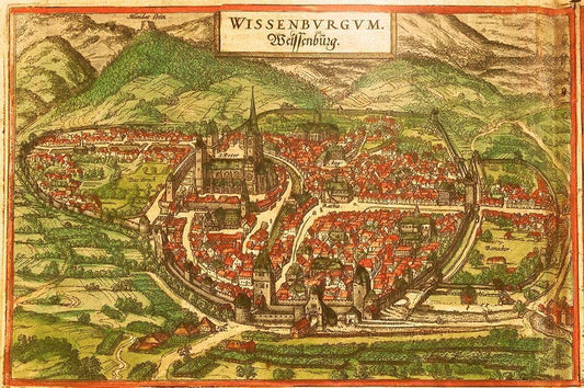 Kempten White Modern Wood Framed Art Print with Double Matting by Hogenberg, Braun