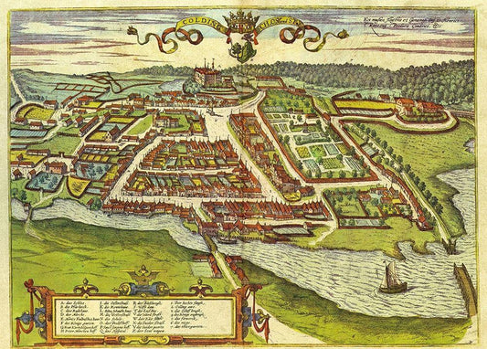 Kolding Denmark White Modern Wood Framed Art Print with Double Matting by Hogenberg, Braun