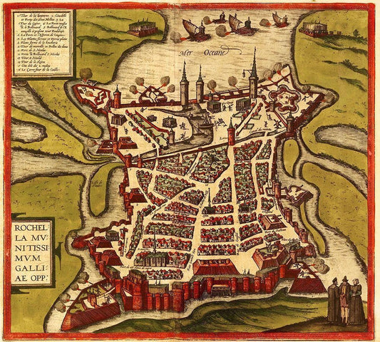 La Rochelle France White Modern Wood Framed Art Print with Double Matting by Hogenberg, Braun