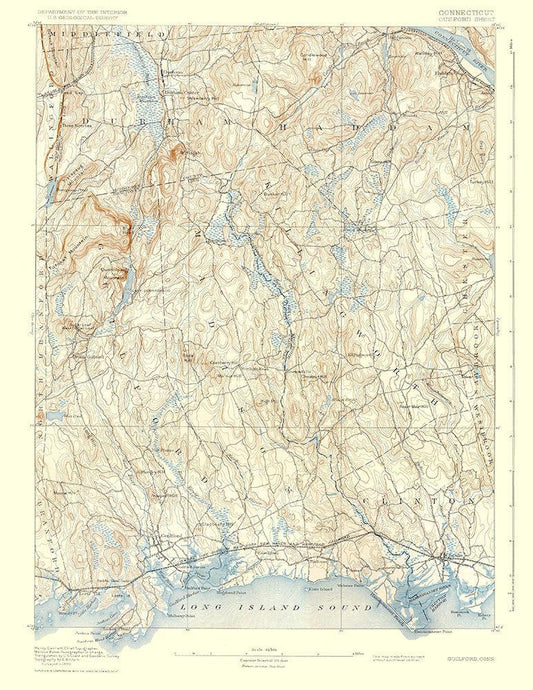 Guilford Connecticut Sheet - USGS 1893 White Modern Wood Framed Art Print with Double Matting by USGS