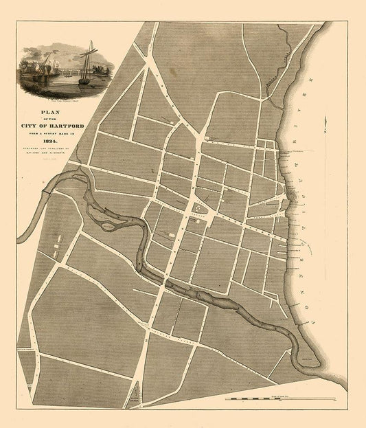 Hartford Connecticut - St John 1824 White Modern Wood Framed Art Print with Double Matting by St John