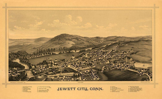 Jewett City, Niantic Connecticut - Hurd 1893 White Modern Wood Framed Art Print with Double Matting by Hurd