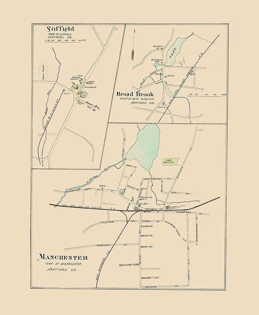 Manchester Connecticut - Hurd 1893 White Modern Wood Framed Art Print with Double Matting by Hurd