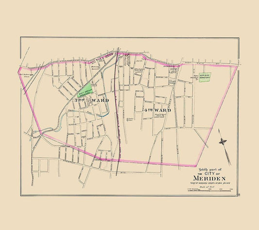 Meriden Connecticut North Part - Hurd 1893 White Modern Wood Framed Art Print with Double Matting by Hurd