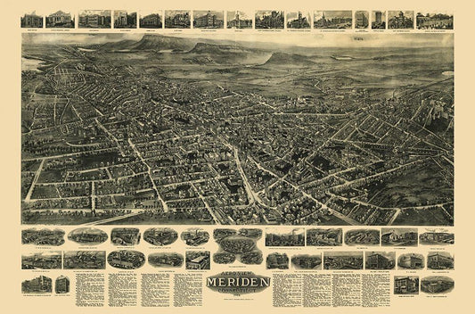 Meriden Connecticut South Part - Hurd 1893 White Modern Wood Framed Art Print with Double Matting by Hurd