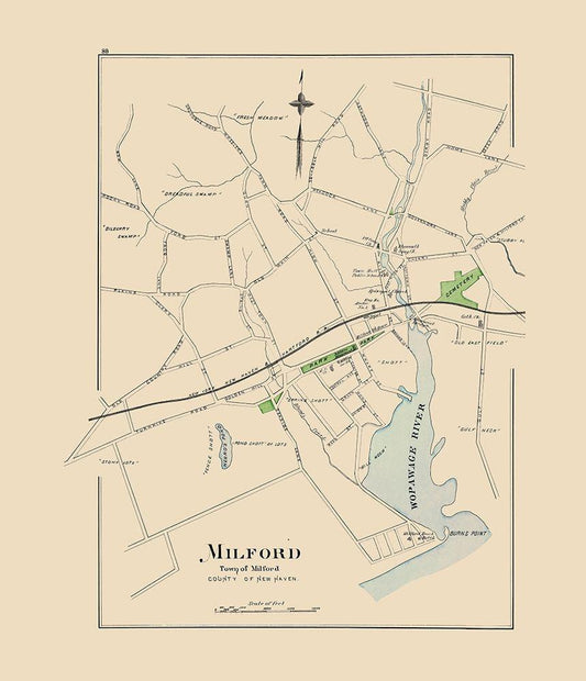 Milford Connecticut - Hurd 1893 White Modern Wood Framed Art Print with Double Matting by Hurd