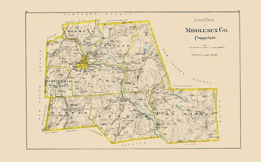 Middlesex North Connecticut - Hurd 1893 White Modern Wood Framed Art Print with Double Matting by Hurd