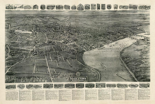 Middleton Connecticut - Hurd 1893 White Modern Wood Framed Art Print with Double Matting by Hurd