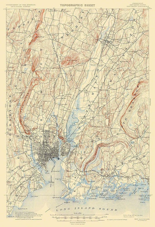 New Haven Connecticut Quad - USGS 1892 White Modern Wood Framed Art Print with Double Matting by USGS