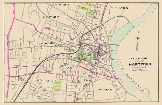 Hartford Connecticut Central Part - Hurd 1893 White Modern Wood Framed Art Print with Double Matting by Hurd