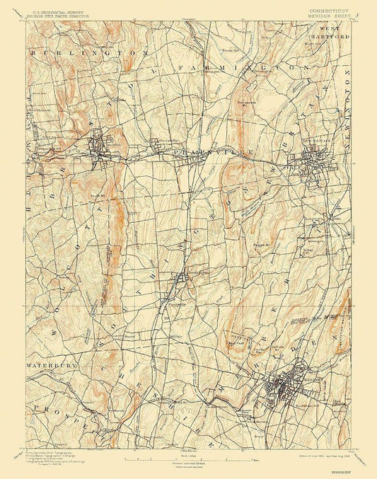 Meridan Connecticut Sheet - USGS 1893 White Modern Wood Framed Art Print with Double Matting by USGS