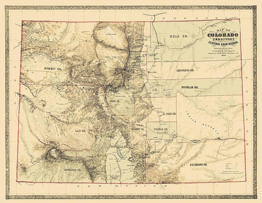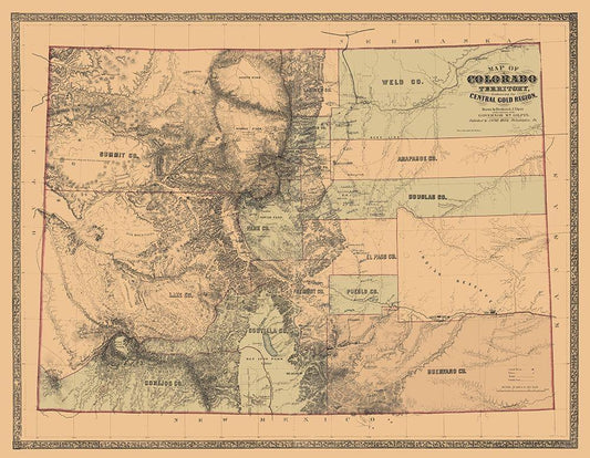 Colorado with the Central Gold Region - Monk 1862 White Modern Wood Framed Art Print with Double Matting by Monk