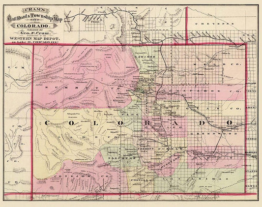 Colorado - Cram 1875 White Modern Wood Framed Art Print with Double Matting by Cram